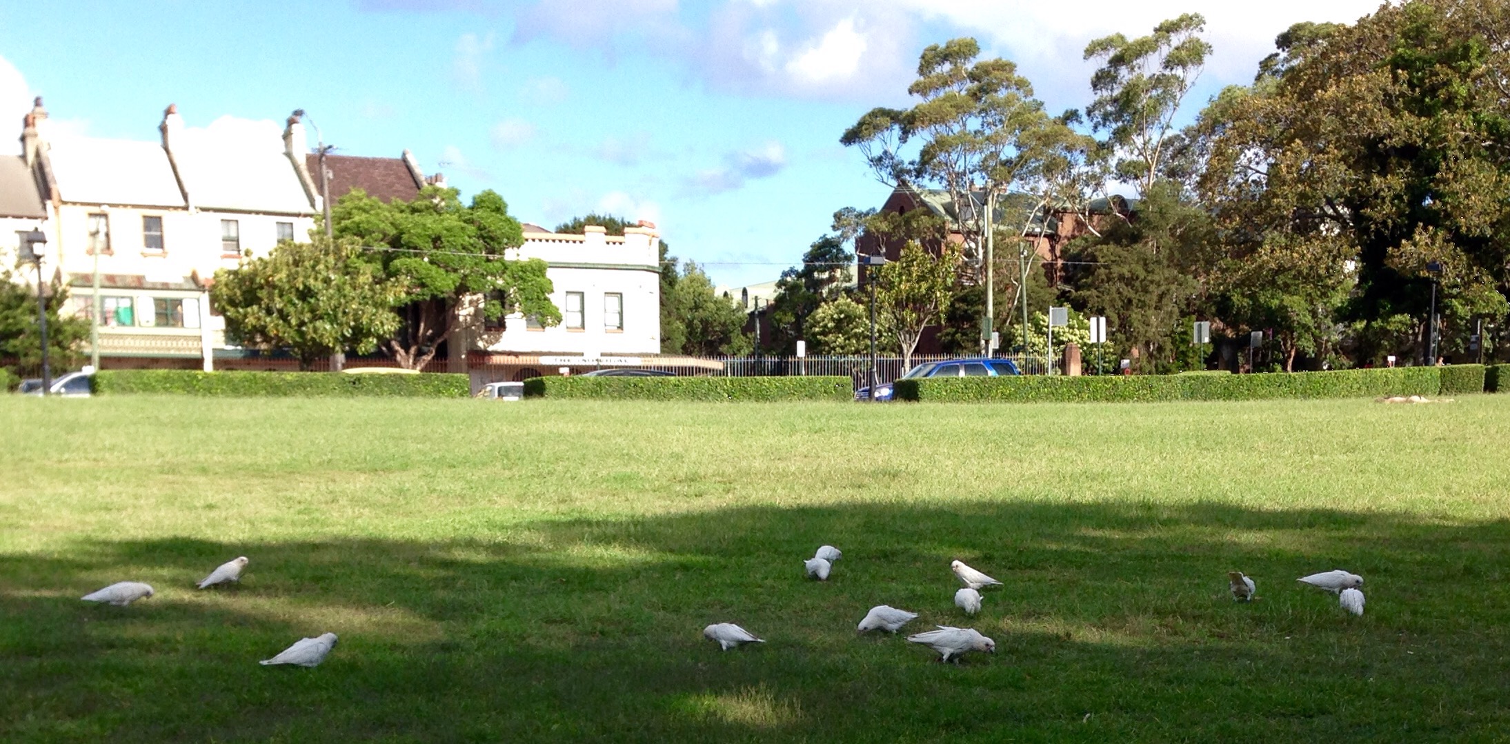 Cockatoos gather in Victoria Park, Sydney, Australia.