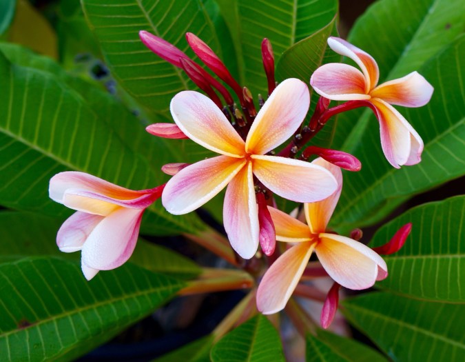 Pink and yellow frangipani in Autumn