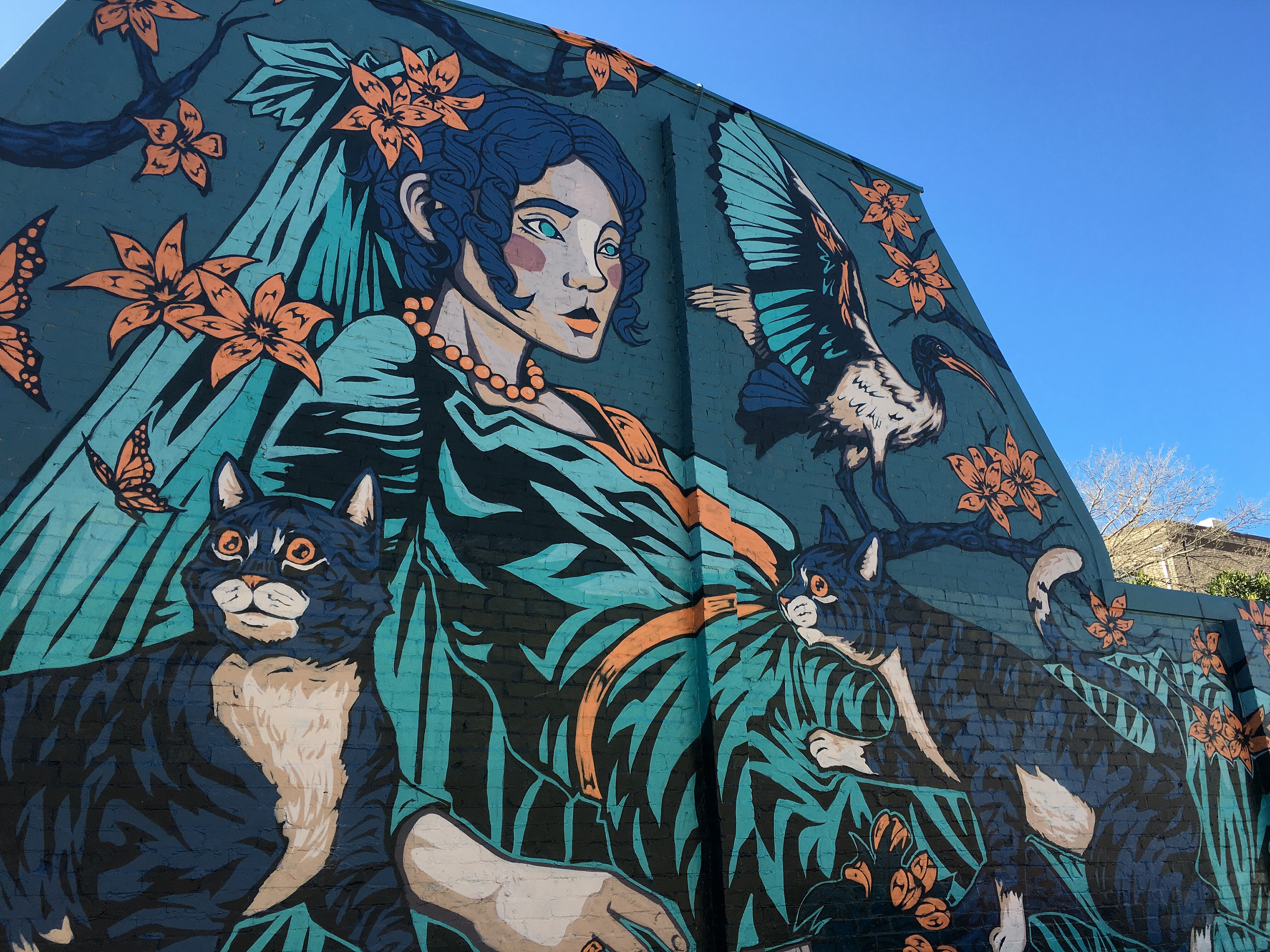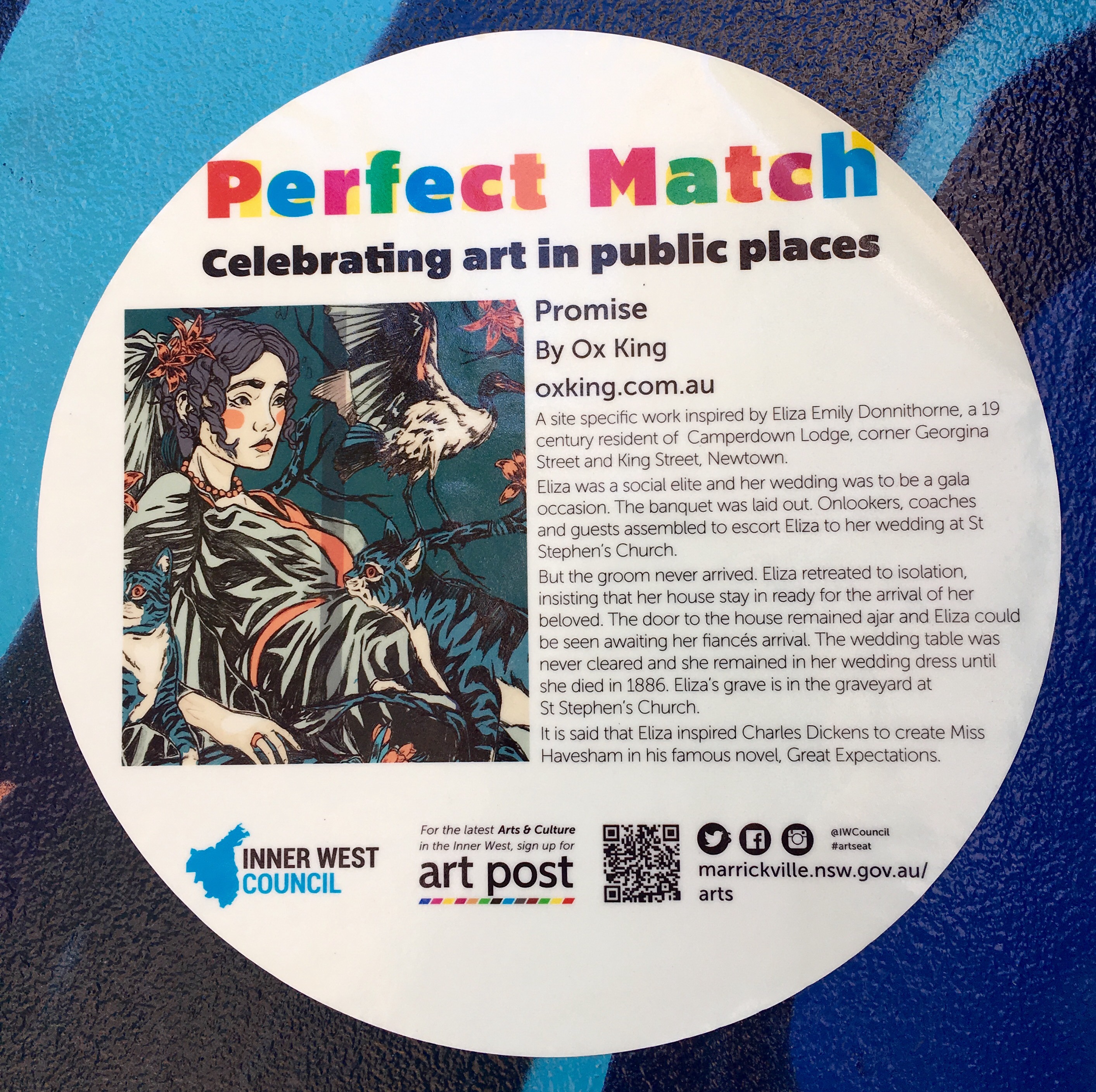 By Ox King is painted on the side of a single story house on Lennox Street, Newtown. Information about the inspiration behind the work is included below.