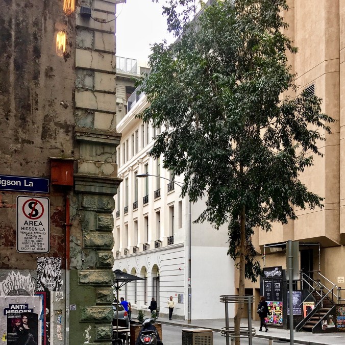 Corner of Higson Lane and Little Flinders Lane eclipsing the Chanel store, Melbourne, Australia.