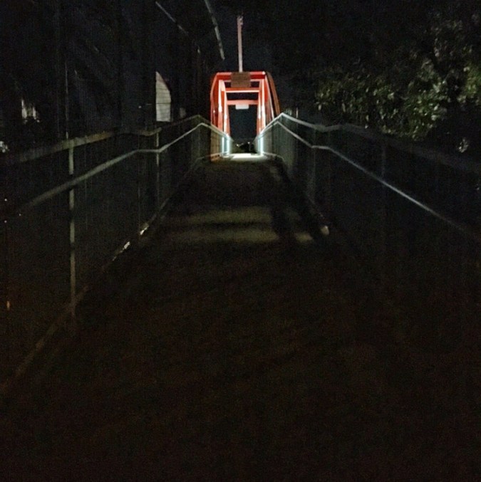 The apex of the bridge provided two spotlights; nowhere near enough to light the serpentine structure.