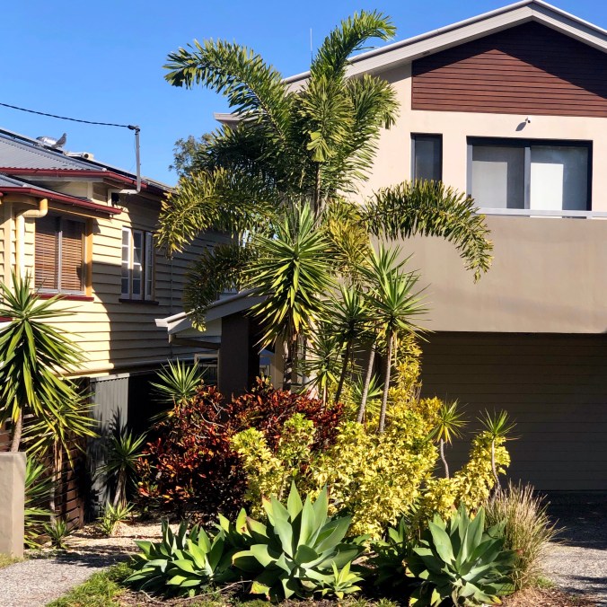 Five plant simplicity August 9, 2019 / Robert I like the simplicity of this front garden in Balmoral, Brisbane. Plants include: Foxtail palm Croton Yucca Something variegated Agave Share this: Click to email a link to a friend (Opens in new window) Email Click to share on Facebook (Opens in new window) Facebook Click to share on LinkedIn (Opens in new window) LinkedIn Click to share on Pinterest (Opens in new window) Pinterest Click to share on Pocket (Opens in new window) Pocket Click to print (Opens in new window) Print Click to share on Reddit (Opens in new window) Reddit Click to share on Tumblr (Opens in new window) Tumblr Click to share on X (Opens in new window) X Like Loading... Related