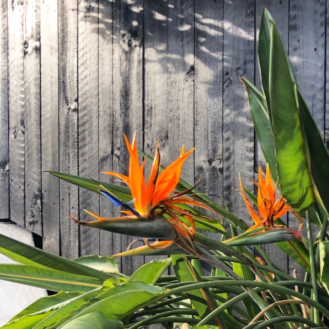 Nature in action, Grosvenor Street, Balmoral, Brisbane. The orange and green of these bird of paradise flowers show how well seconday colours compliment each other.