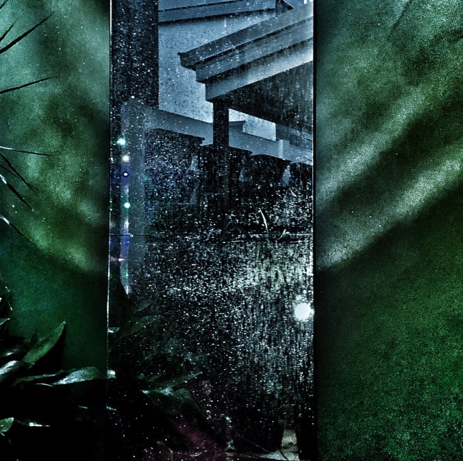 Pouring down, hitting ground; transmutating.