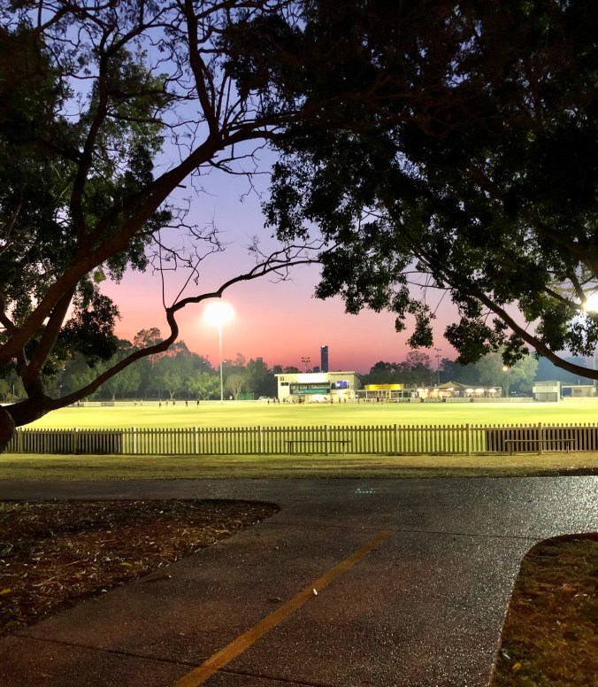 Hawthorne Park at twilight.