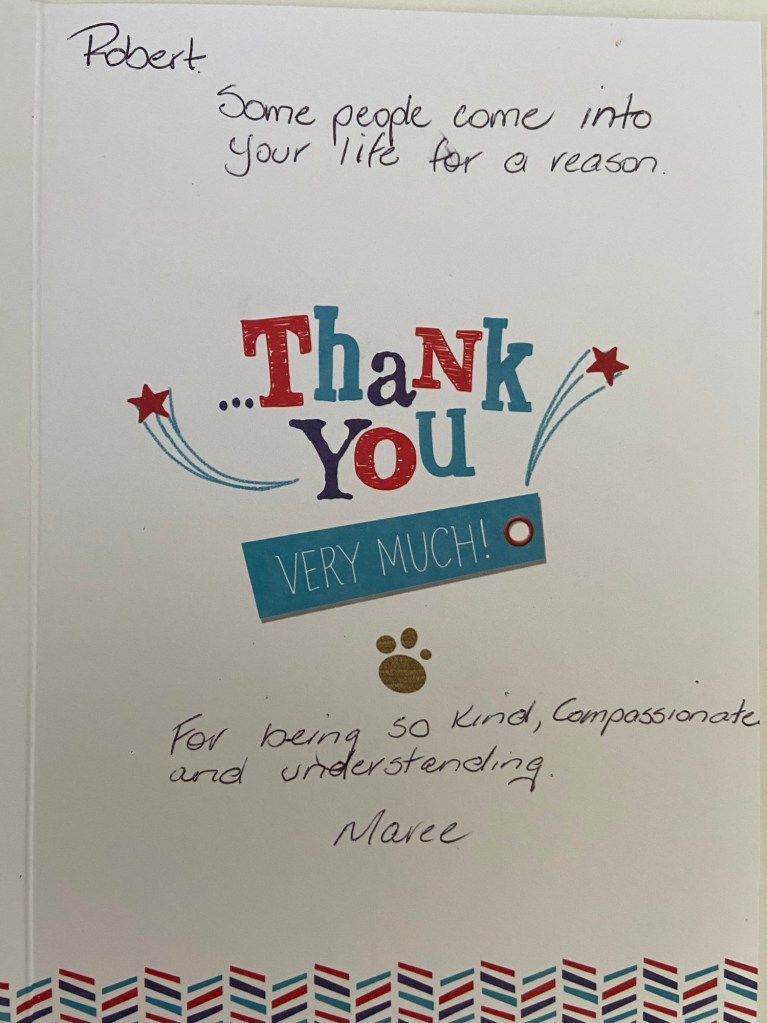 My new boss said, it is one thing to record positive feedback in the notes of a telephone conversation and another to receive an email. When one of my clients takes the time to mail a thank you card that is something else.