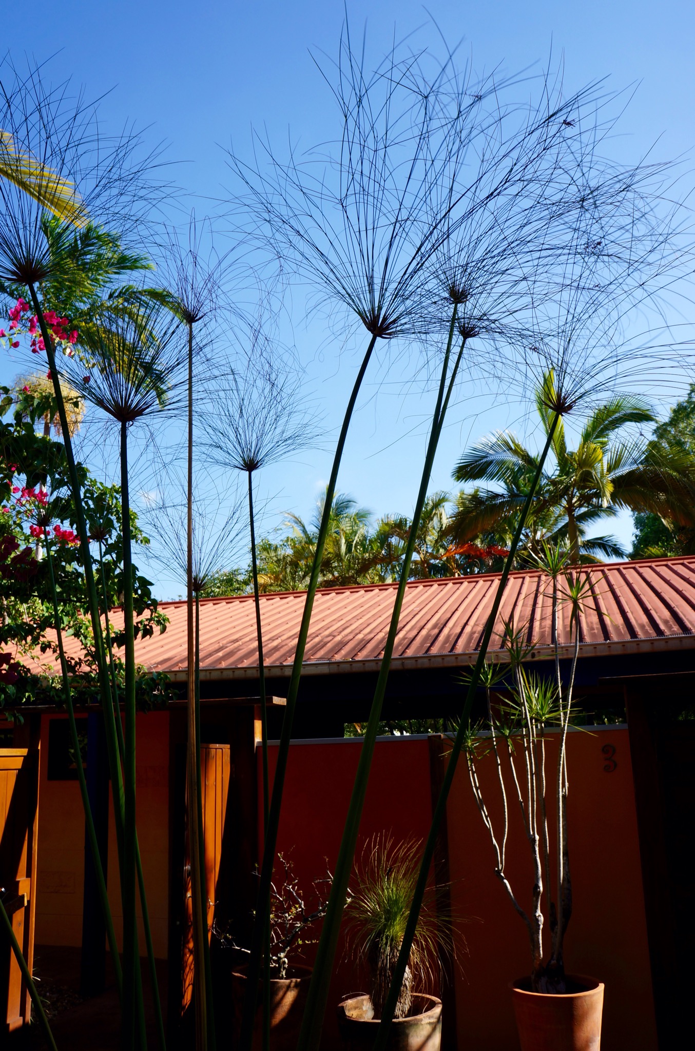This light yellow ochre painted house is one of my favourites in Leichhardt. I slowly made my way home from Norton Street yesterday afternoon. I was struck by the vibrant and contrasting colours of the magenta flowers against the dark green trees. The hazy appearance of the picture is due to the light coming from the behind the yew.
