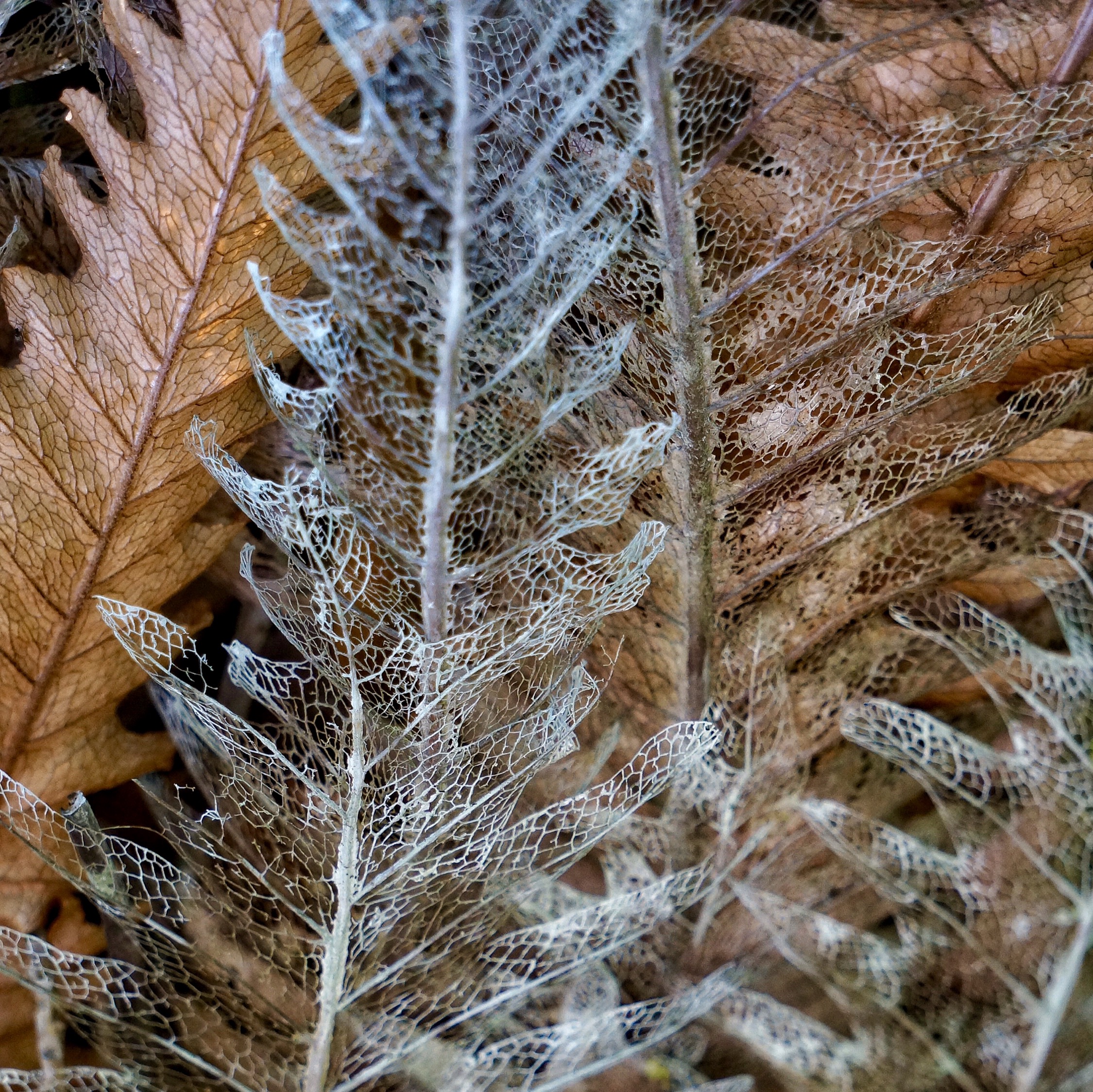 Skeletal ferns October 28, 2017 / Robert / 5 Comments New fronds were beginning to sprout from the base of a palm tree. Skeletal fern leaves remain as a memory of previous growth.