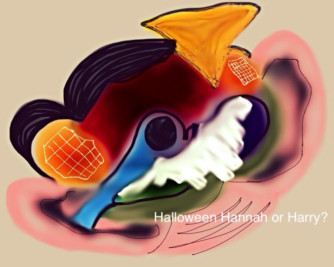 Hannah or Harry? October 30, 2015 / Robert / 3 Comments This gargoyle like image evolved from blending blobs of colour. The ear and teeth shapes are intentional. I used Paper and Pencil by fiftythree to create this haunting Halloween abstract.
