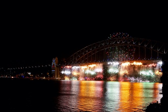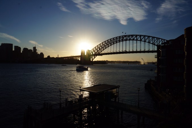 Thankfully I took the trouble of fishing out my Sony Nex-5N digital SLR camera, ensuring the battery was charged. The clear Winter’s evening and water on top of a wall yielded the jewel of Sydney Harbour and it’s reflection. I used Snapseed app for iPad to sharpen and enhance the structure of the image.