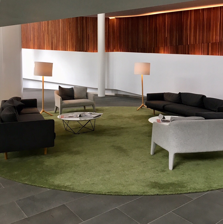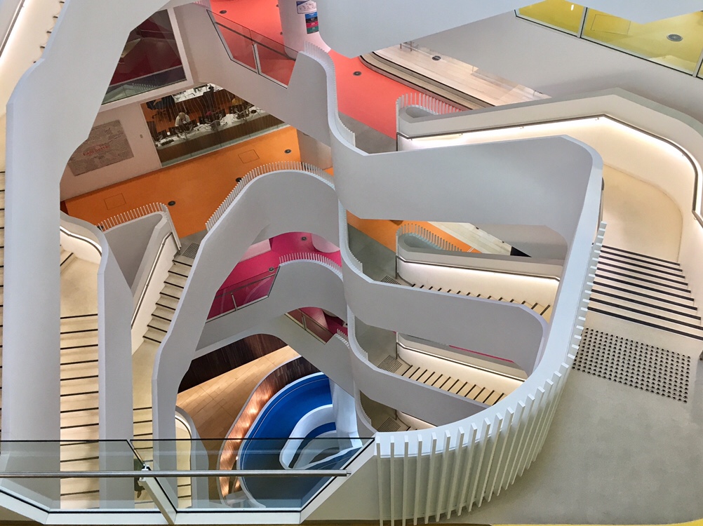 Arriving about fifteen minutes ahead of schedule, I took the blue ramp up three floors to reception, on the Park level, rather than using a lift.