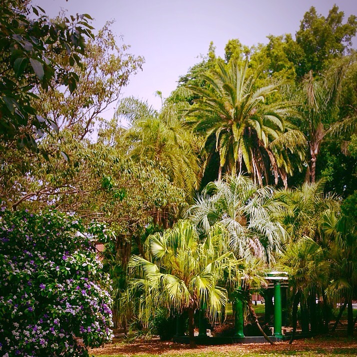 The oval is clipped to within an inch of its life. In comparison, the lawned areas of the surrounding park are meadow like. Proudly displaying lush green blades of 200mm plus grass, the result of cooling autumn weather and an abundance of rain. Petersham Park was resplendent during our walk with Stan today.