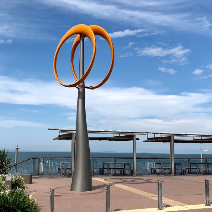 This steel and carbon fibre sculpture (2011) by New Zealander artist, Phil Price is located on the Redcliffe, Queensland foreshore.