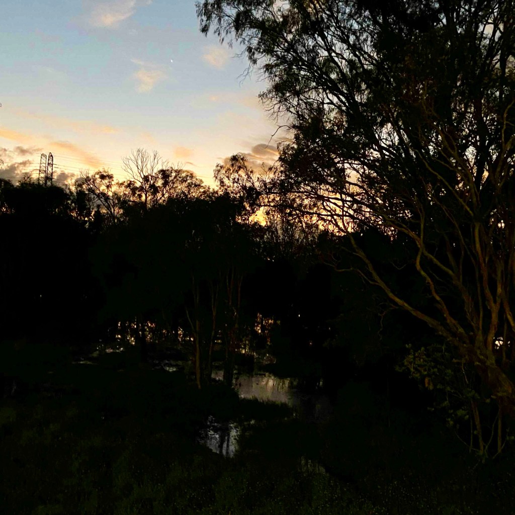 Below a shot of one of my favourite views from the station. Glimpses of the heavens reflected in Saltwater Creek surrounded by silhouetted trees.