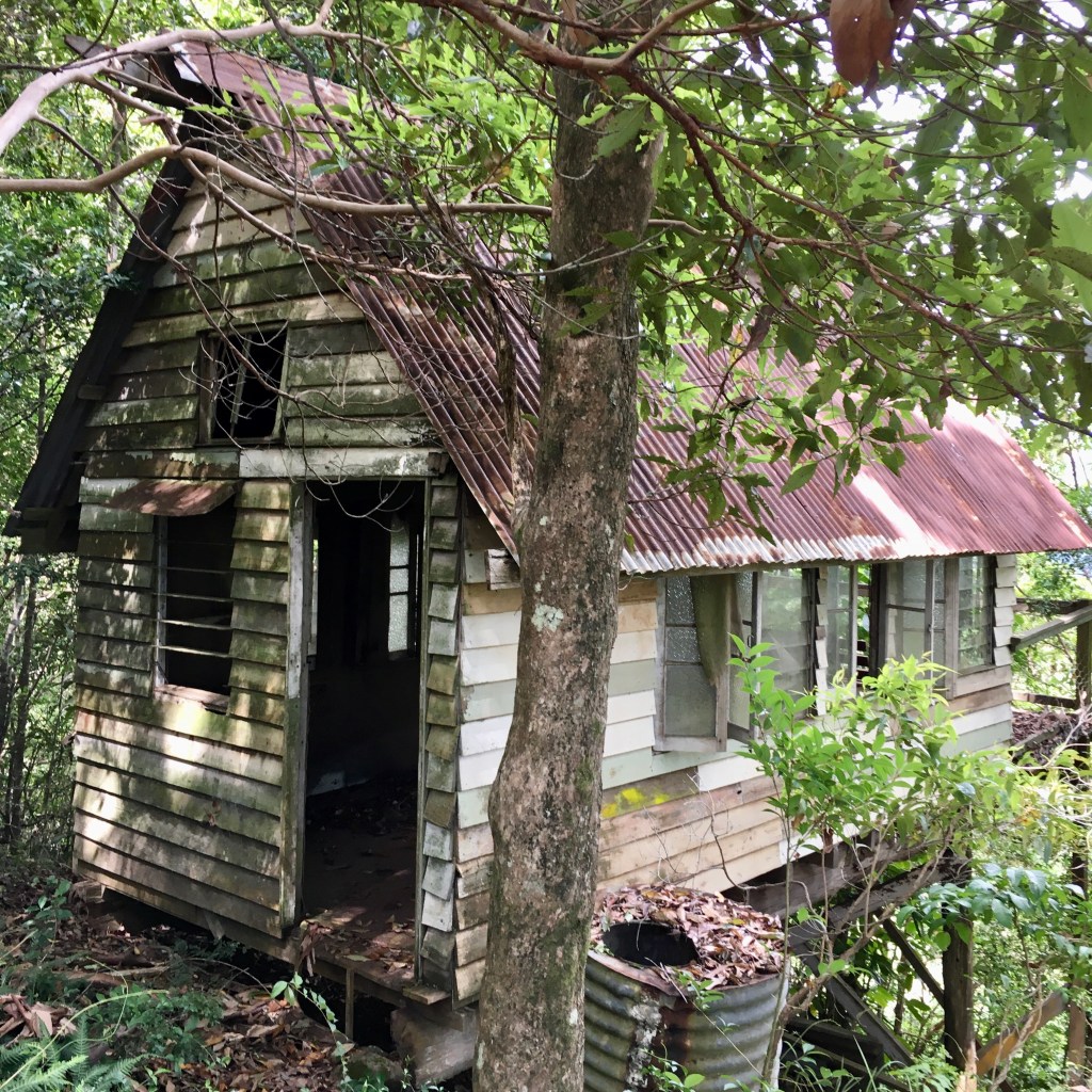 This fixer upper would make a great tiny house. An open plan single storey including a bed with a second bed in the roof space, accessed by a ladder; a little like a two storey tree house.