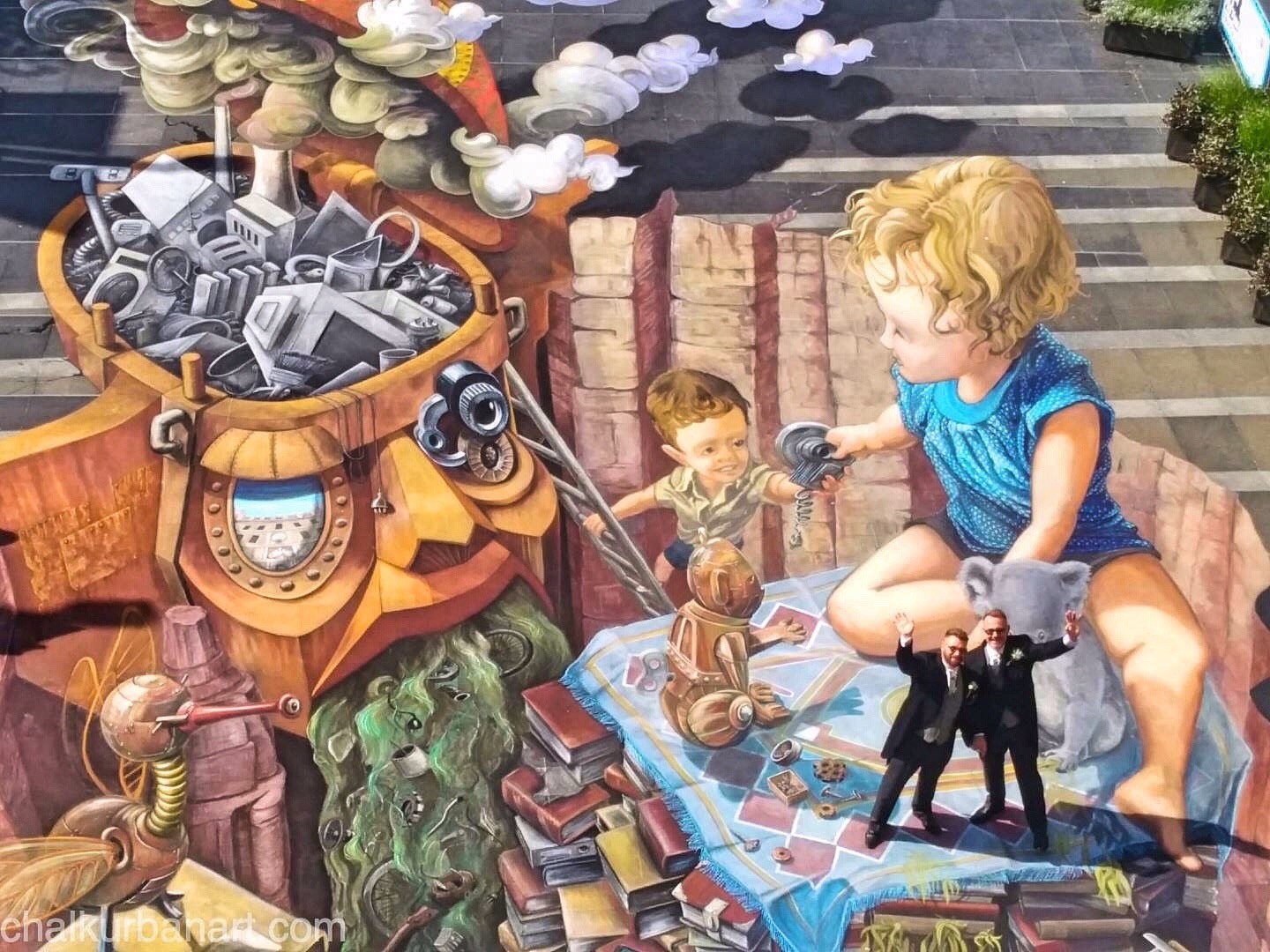 “As I have been asked to share this again…amazing chalk art picture, the largest ever created in Australia in the forecourt of Customs House.