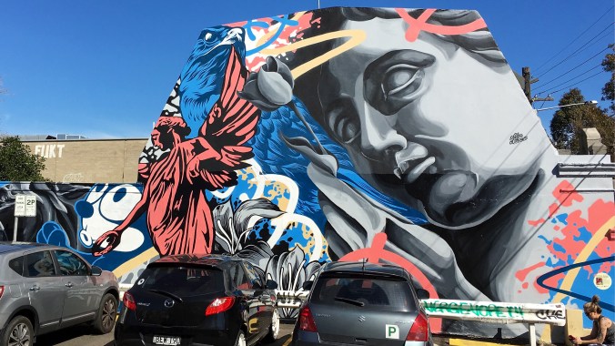 By Alex Lehours is painted on the side of a single story house on Lennox Street, Newtown, more information below.